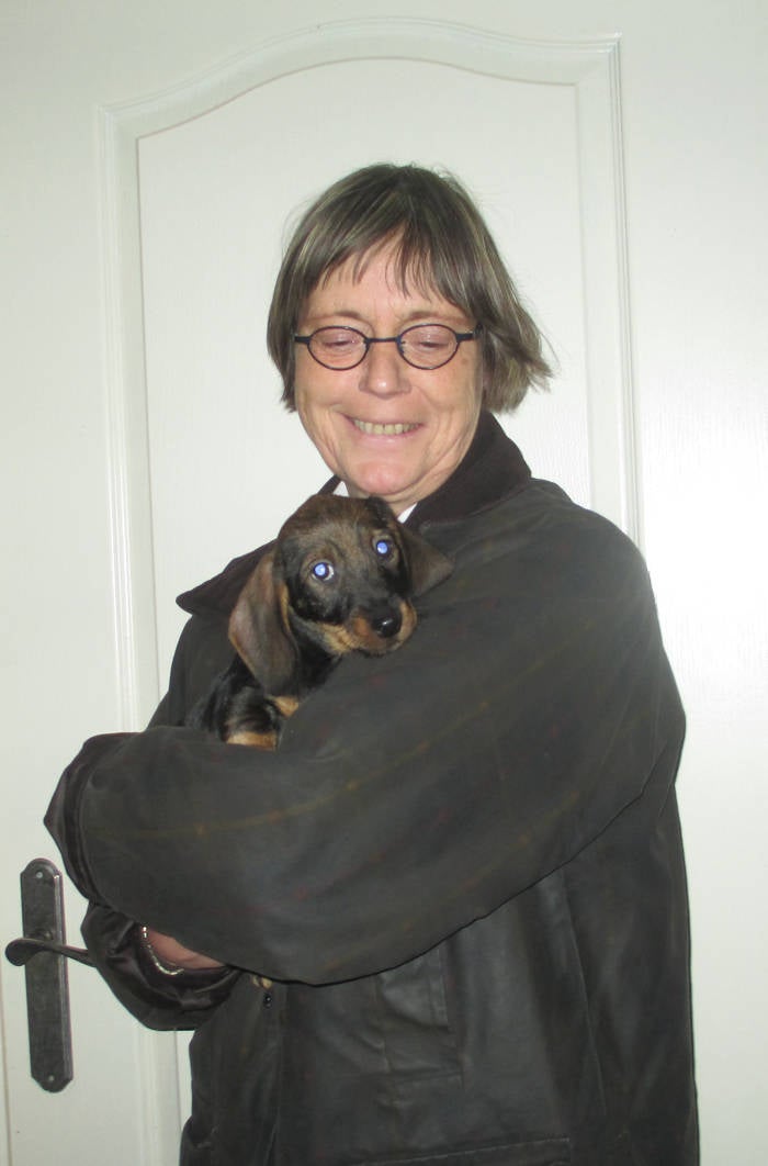Hier weer op schoot, jullie zien wel dat ik het erg naar mijn zin heb, bij mijn nieuwe huisgenoten.
